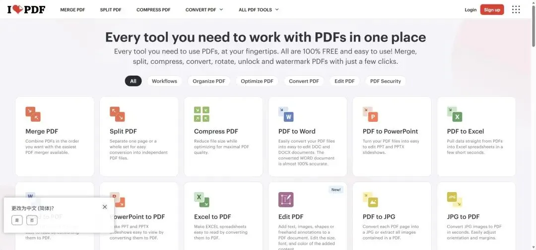 - PDF转Word、图片转PDF、合并、拆分、压缩、提取页面、加密解密……你能想到的所有功能,它全都有。