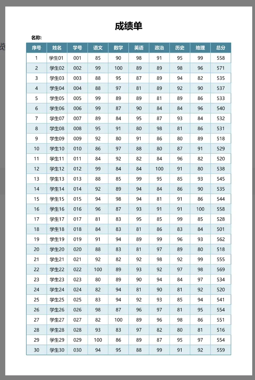 >100款+学生成绩表,Excel电子版可编辑修改可打印!