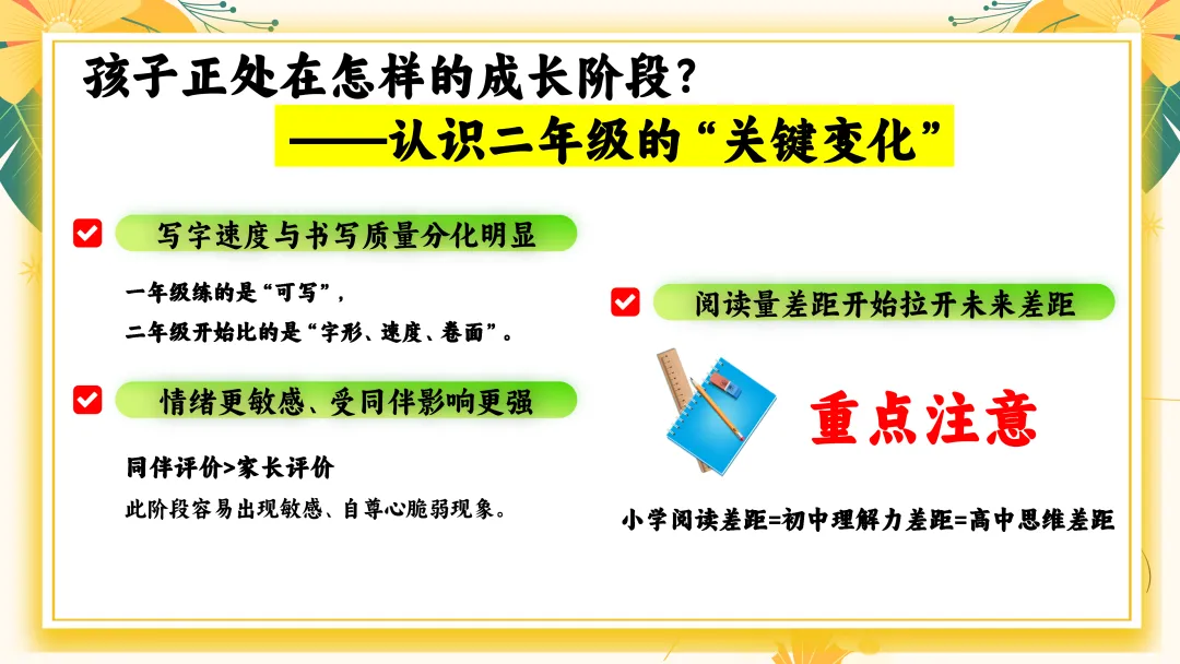 首先,我们来认识一下二年级的“关键变化”。在“成长”这件大事上,我们都不应缺席!