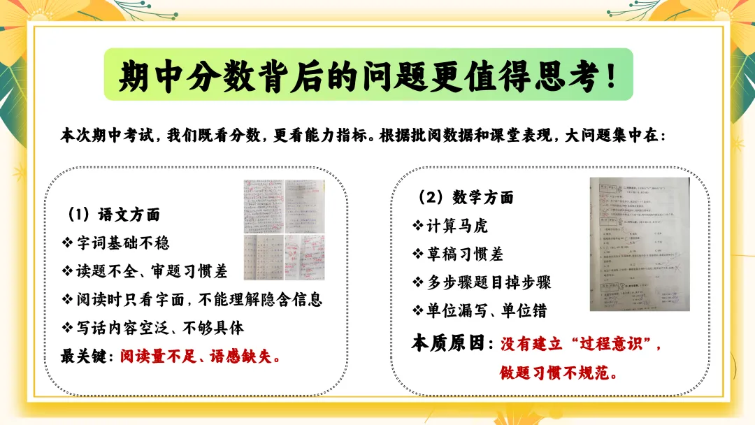 本次期中考试,我们既看分数,更看能力指标。根据批阅数据和课堂表现,大问题集中在: