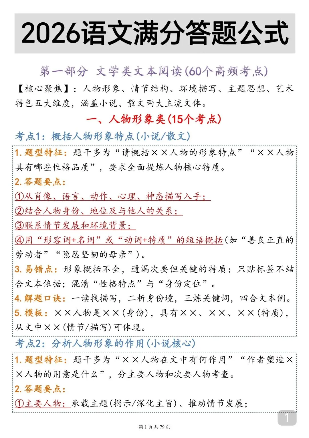 >2026年语文满分答题技巧(Word打印版)语文书上没有但十分好用