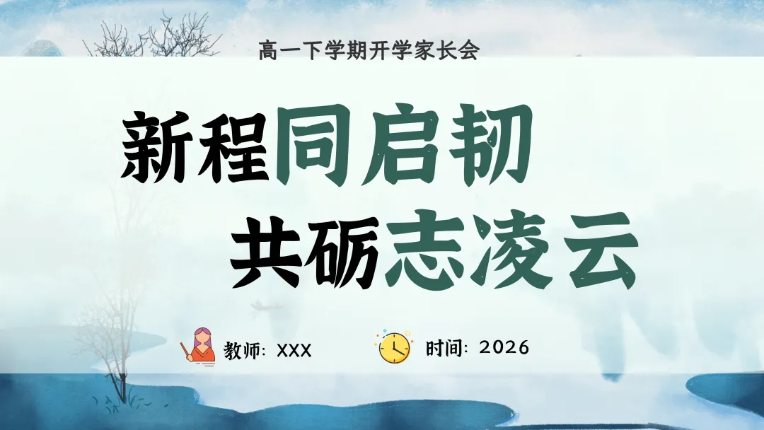 很高兴在这与您相遇,如果您是一位班主任老师,每天除了应对繁重的教学工作,还要加班整理班级、教务、教研、课件PPT资料,请关注下方的“小雨教务资料”,让我们风雨同路、一起成长~今天分享的是2026高一春季下开学家长会的ppt课件和配套的发言稿,主题是《新程同启韧,共砺志凌云》。【高一】【下开学】