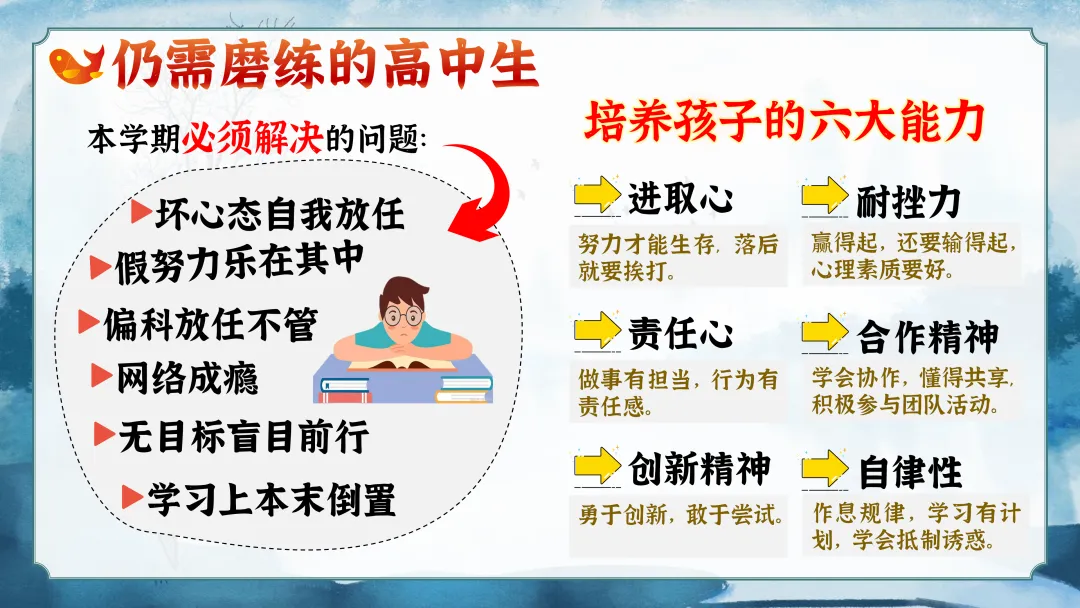 时光荏苒,如白驹过隙,孩子们踏入高中校园已经度过了一个学期。从初入高中时的懵懂青涩,到如今逐渐适应高中学习的节奏,在这一段崭新的旅程中,每一位孩子都在努力成长、蜕变,每一位家长也都在背后默默支持、牵挂。
