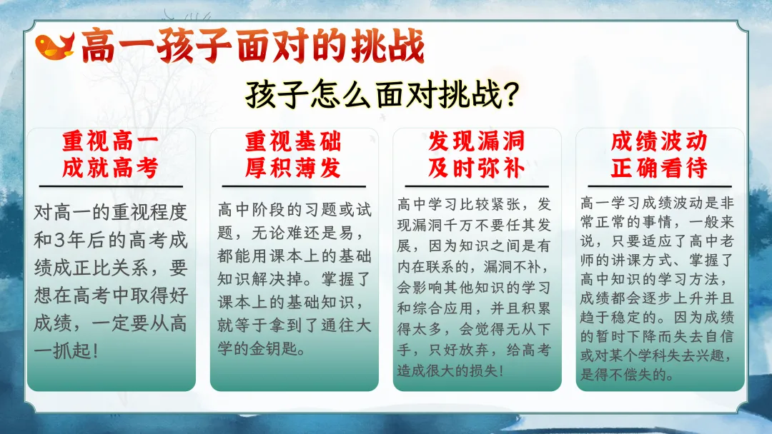 高一,是孩子们求学生涯中一个极为关键的转折点。新知识如潮水般涌来,课程难度的提升、学习方法的转变、学业竞争的压力,这些都是孩子们需要面对的挑战。但同时,这也是他们挖掘潜能、拓展视野、结交挚友的美好时期。在这个过程中,家庭与学校的协同作用至关重要。