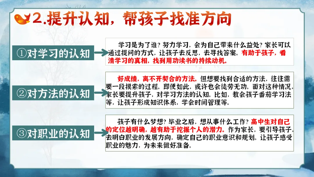 ·对考试的成绩和排名要有正确的认识,不盲目攀比,不要总用“别人家的孩子”高中三年早规划