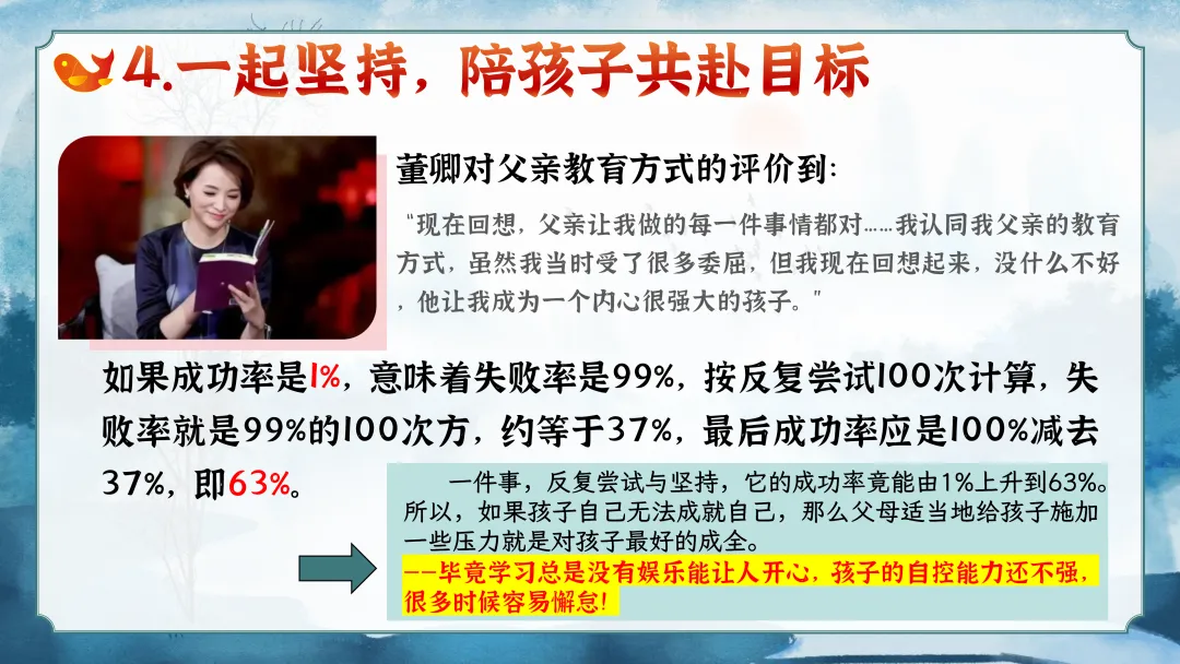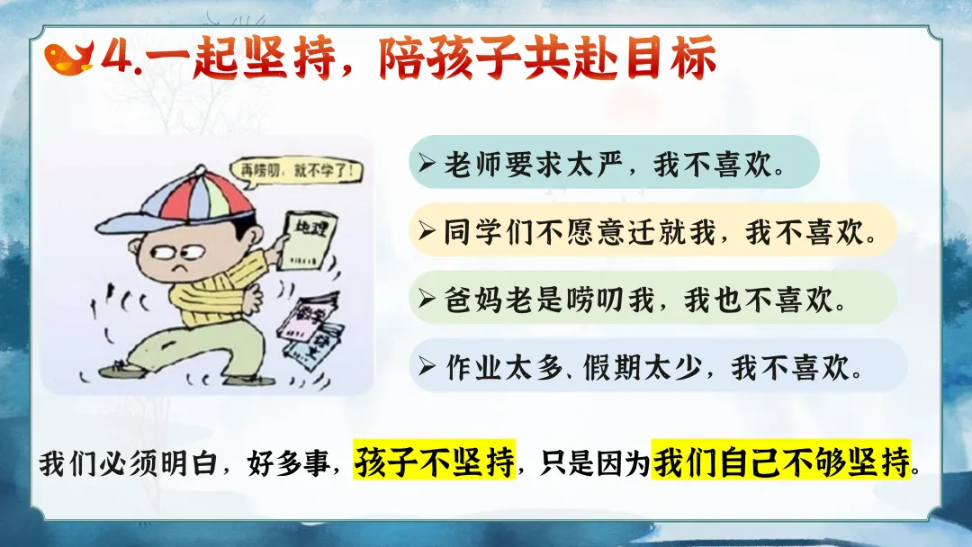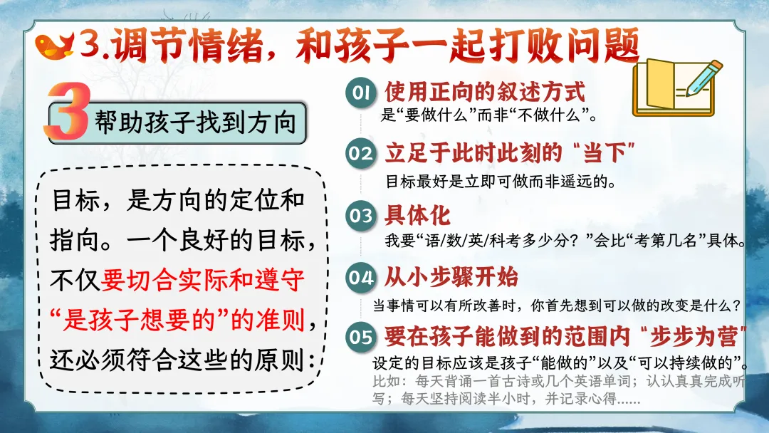 ·家长可结合孩子平时的学习成绩,和孩子一起制定目标,要有一定压力,但也不应过度期望。