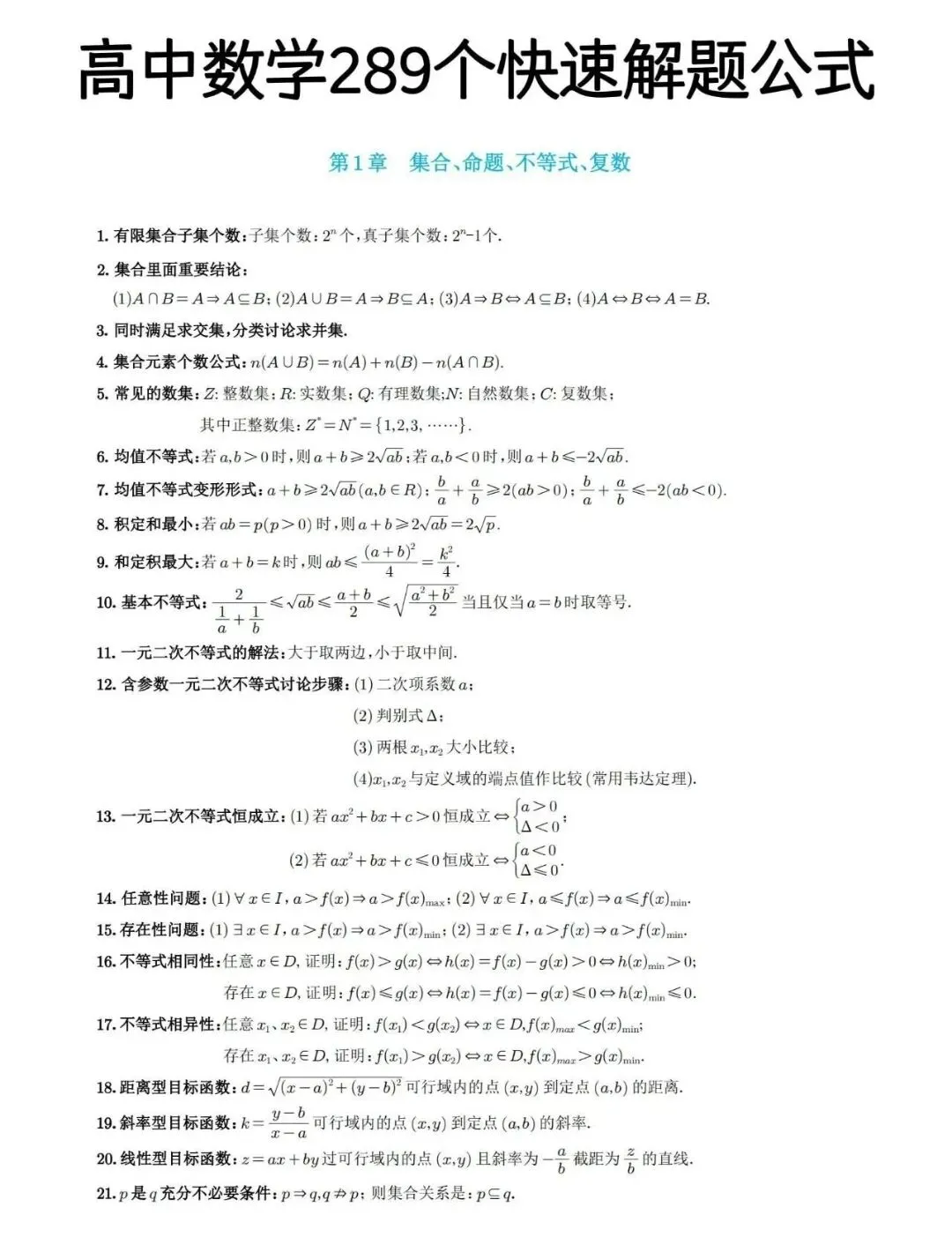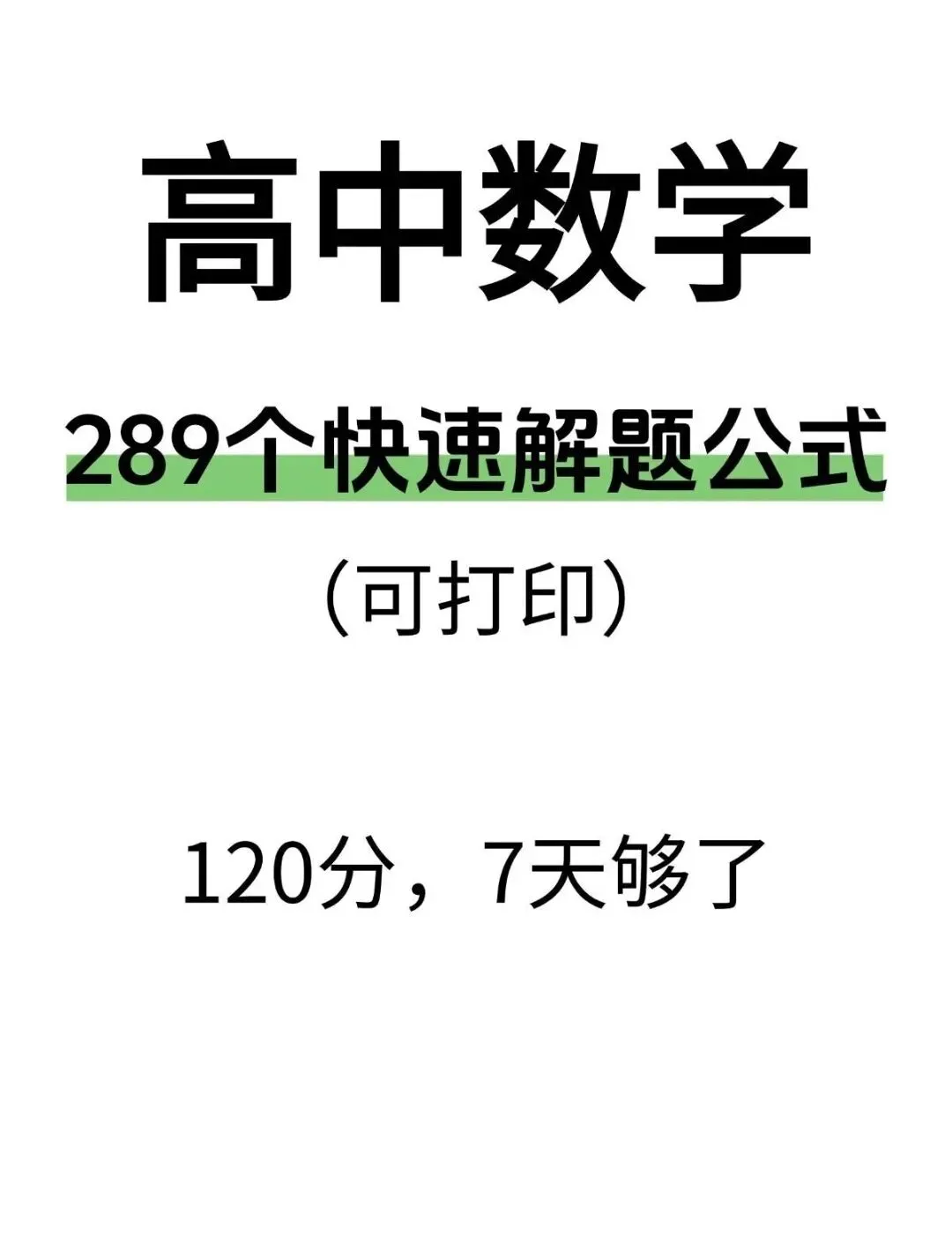 今天给同学们分享的是【高中数学超全快速解题公式】,准高一的同学们一定要看,高二高三复习的同学们更要看~