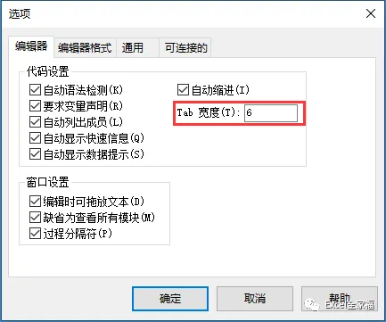 最后,在【编辑器】对话框,将【自动缩进】的【宽度】设置为 6