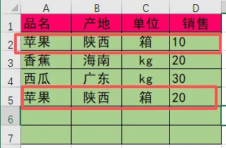 上面数据可任意增加,品名有相同数据时进行销售汇总,最终生成如下结果,下表所有数据全部自动产生: