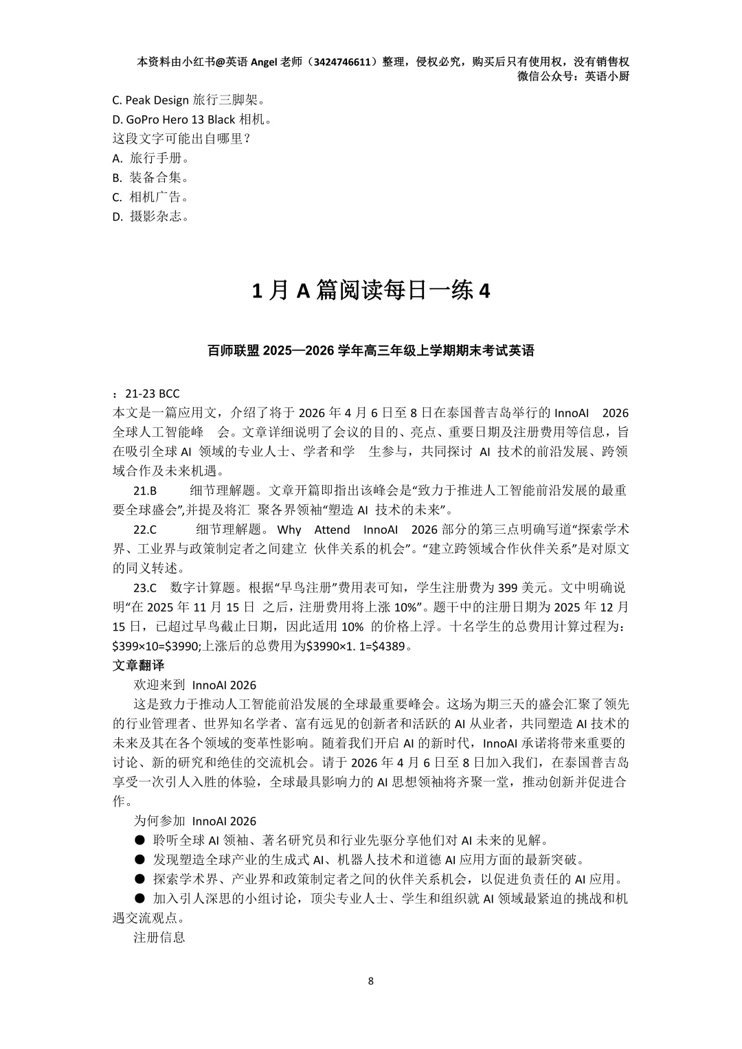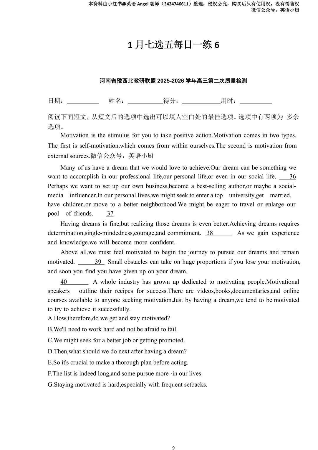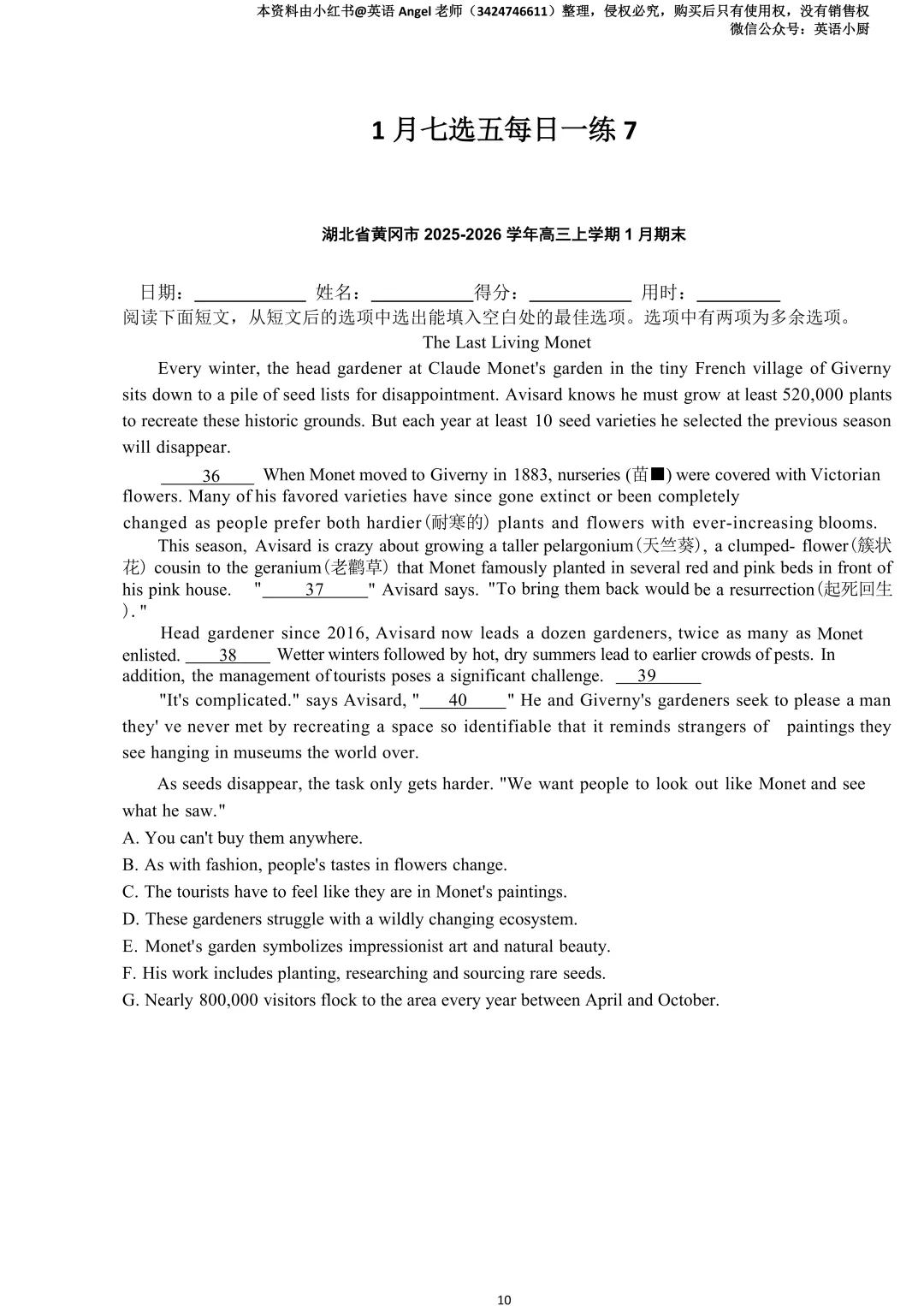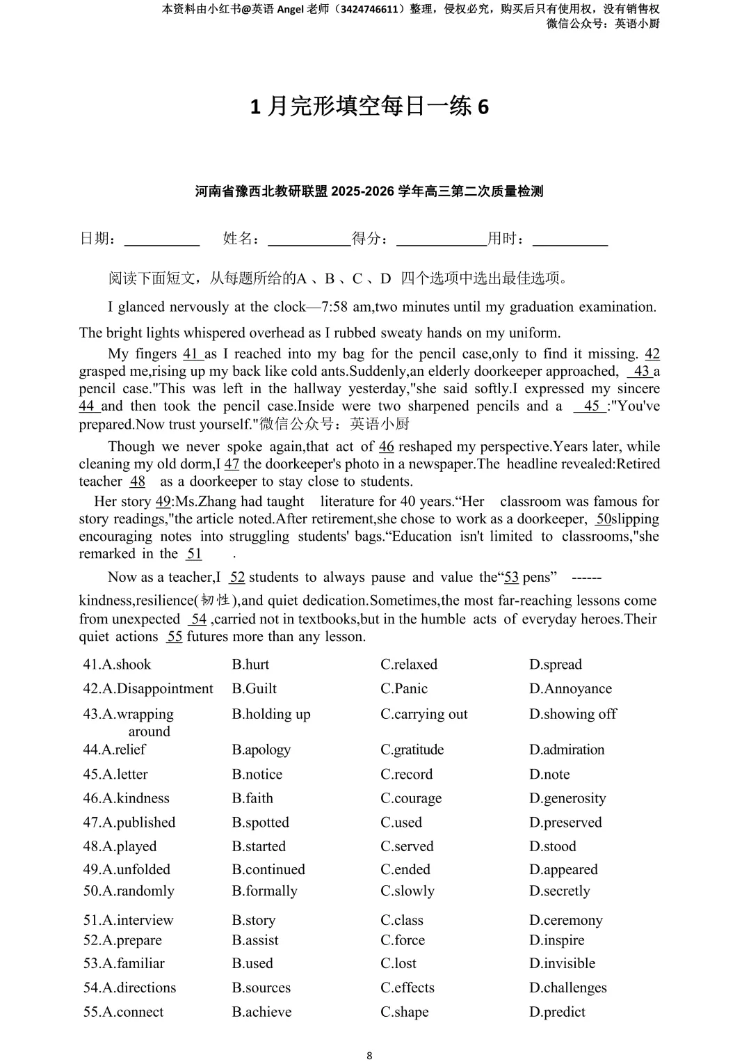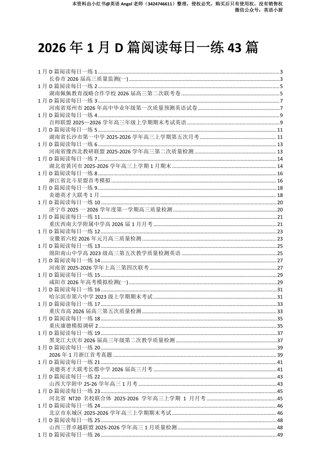 今天要和大家分享的是26年1月份模拟题专题,把每一种题型拆开进行汇总,目前整理了A、B、C、D、七选五、完形填空、语法填空。每种题型43份,阅读理解带了文章翻译与详细答案。获取方式在最后面。