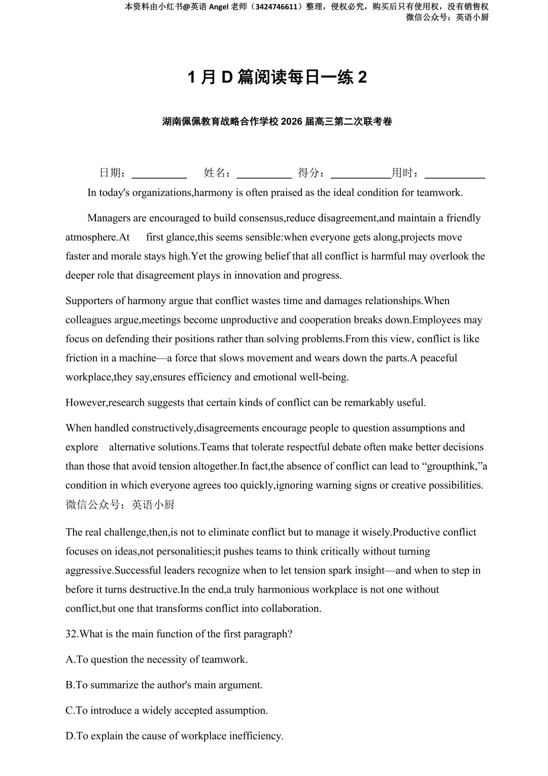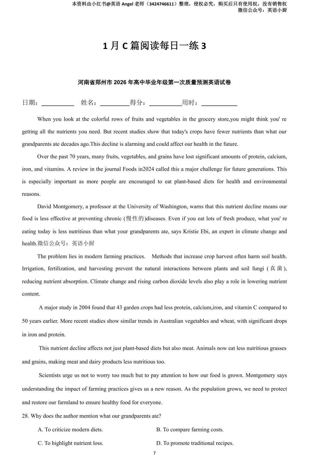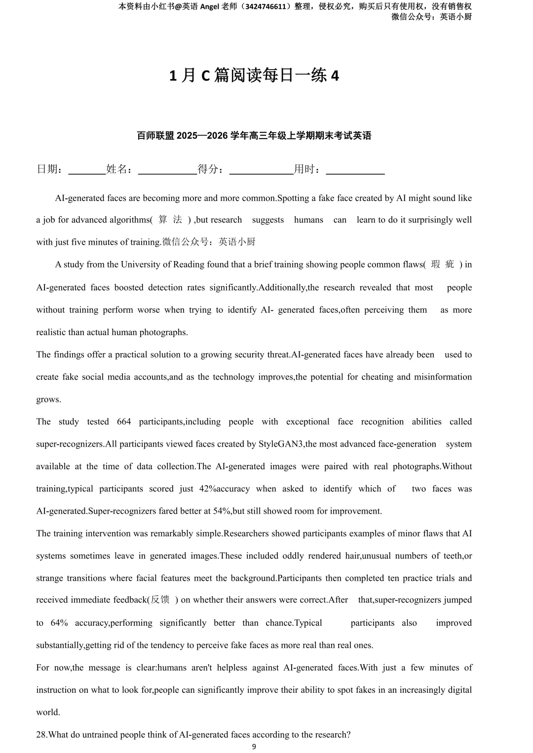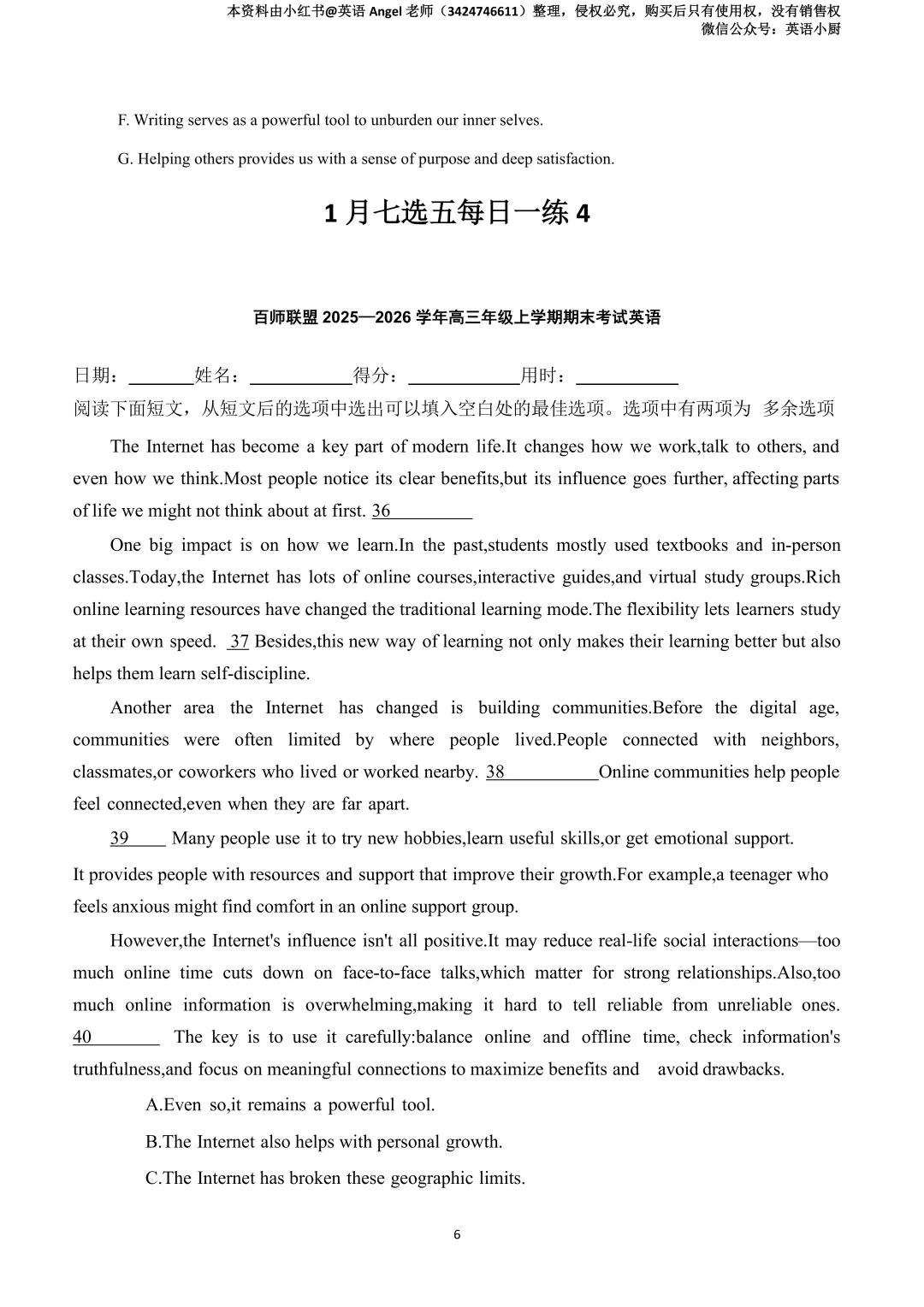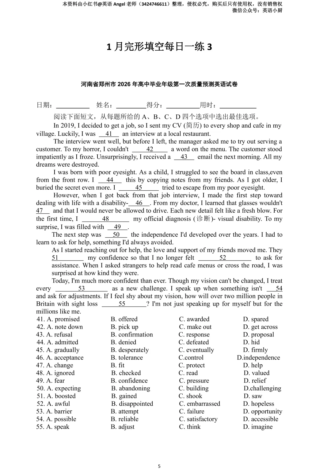 今天要和大家分享的是26年1月份模拟题专题,把每一种题型拆开进行汇总,目前整理了A、B、C、D、七选五、完形填空、语法填空。每种题型43份,阅读理解带了文章翻译与详细答案。获取方式在最后面。