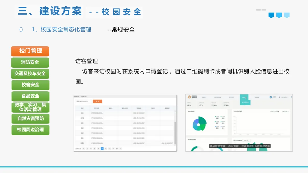 方案以校园数字大脑为核心支撑,搭建了覆盖结构化、非结构化、半结构化数据的校园数据中心,整合学籍、考勤、教学、安防等多维度数据,通过数据治理与智能分析,为各类应用提供数据赋能。校园安全方面,构建了常态化管理与应急管理双重体系,涵盖智能安防预警、消防监控、访客管理等功能,结合视频识别、行为分析实现异常情况实时预警与快速处置。智慧教学板块打造了班班通、人人通等教学平台,配套教研管理、精品课程管理、校园智能画像等功能,实现教学过程数据化、教研活动协同化、学习体验个性化。