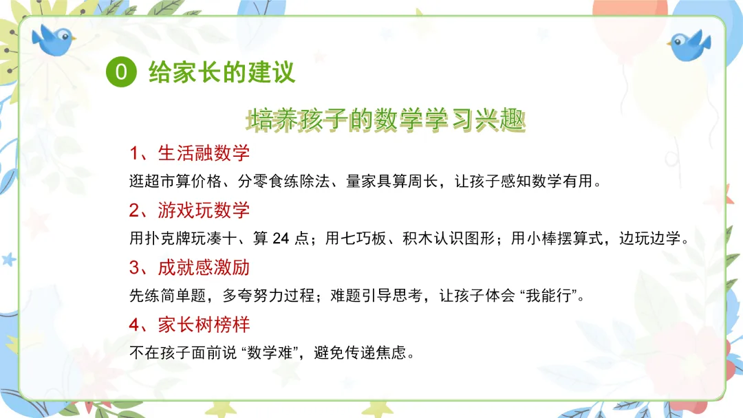 教育孩子从来都不是学校单方面的事,离不开家校之间的紧密配合。希望今天能和各位家长坦诚交流,携手帮助孩子们在数学学习的道路上稳步前行。