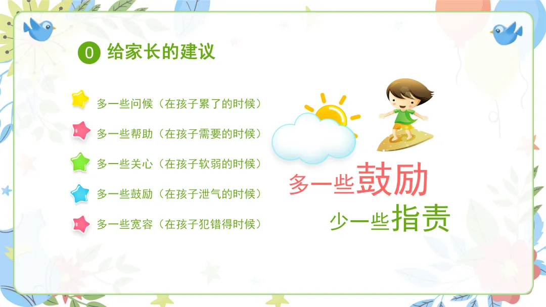 多一些问候(在孩子累了的时候),多一些帮助(在孩子需要的时候)