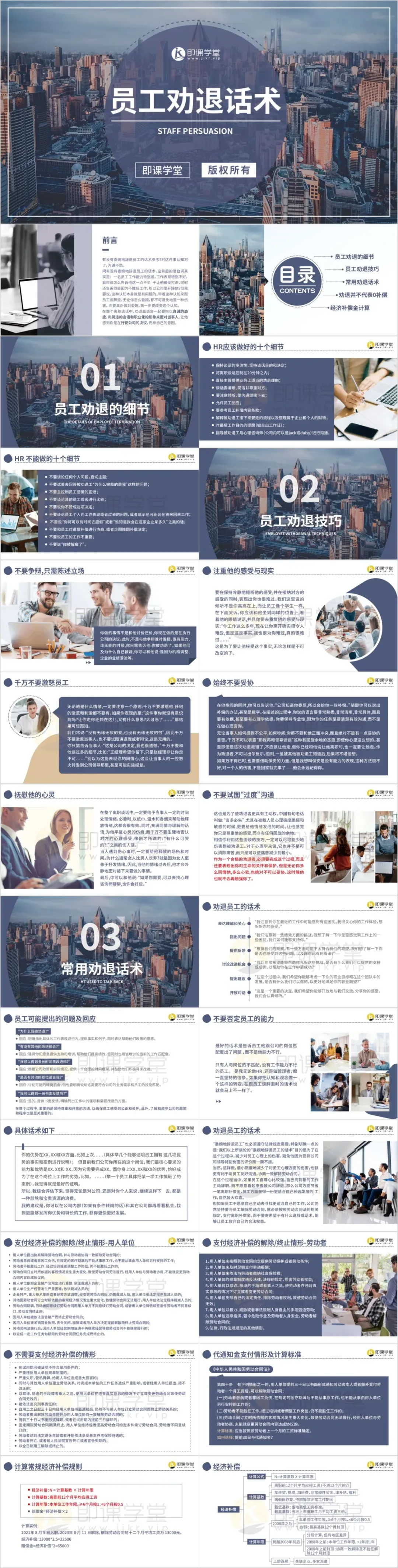 2套员工劝退话术PPT,内容完整,制作精美,可自学,可企业内部培训使用。部分PPT页面截图展示如下: