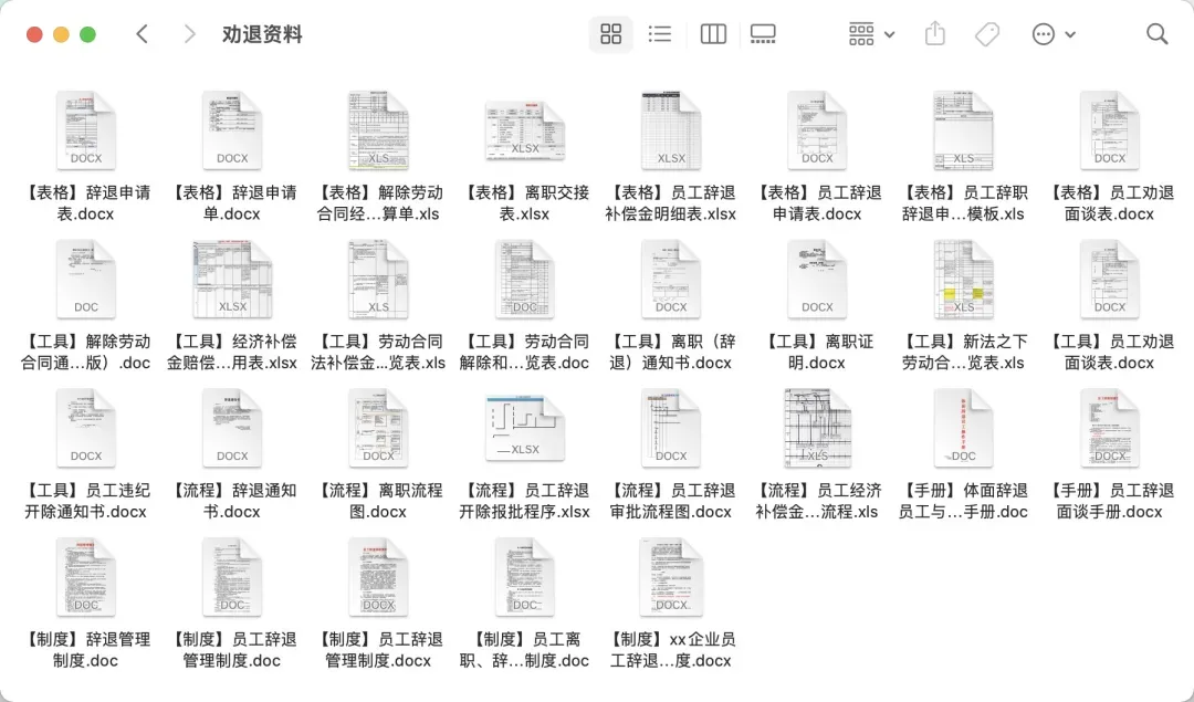 50份劝退资料及解除模板,包含辞退工具、表格、制度、解除劳动合同通知书、解除劳动合同协议书等模板。