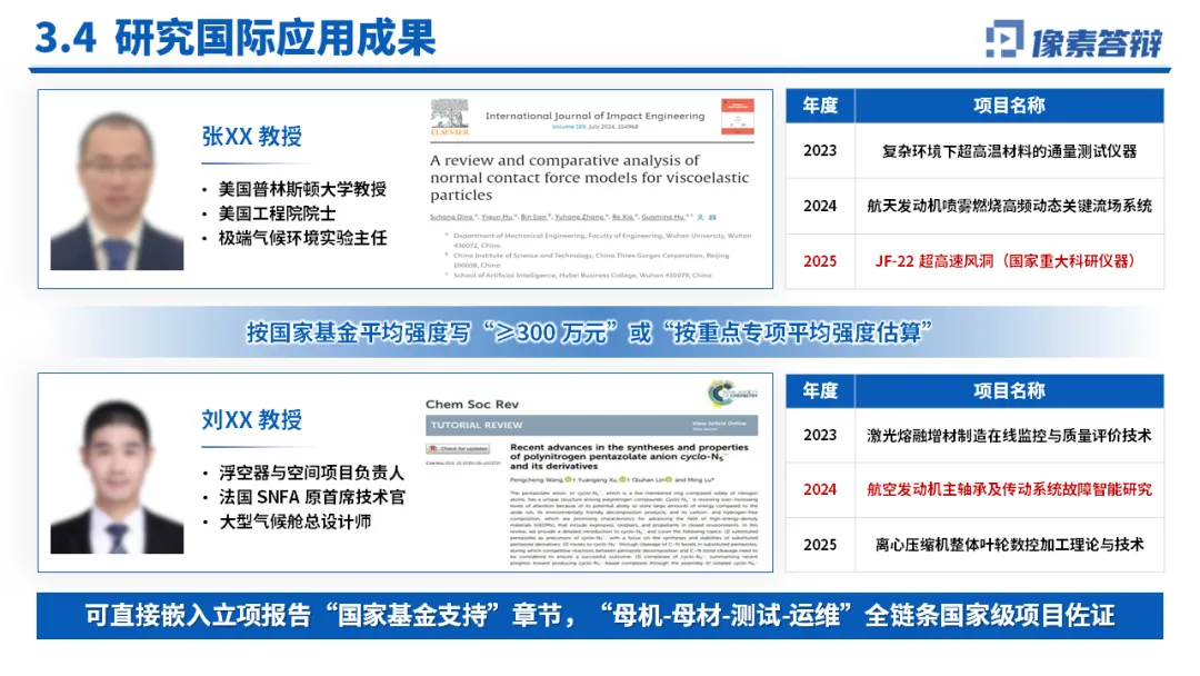 3.团队背书加分:介绍核心团队成员的背景,比如美国工程院院士、法国 SNFA 原首席技术官等,体现团队的专业实力,增强评审对项目的信任度。