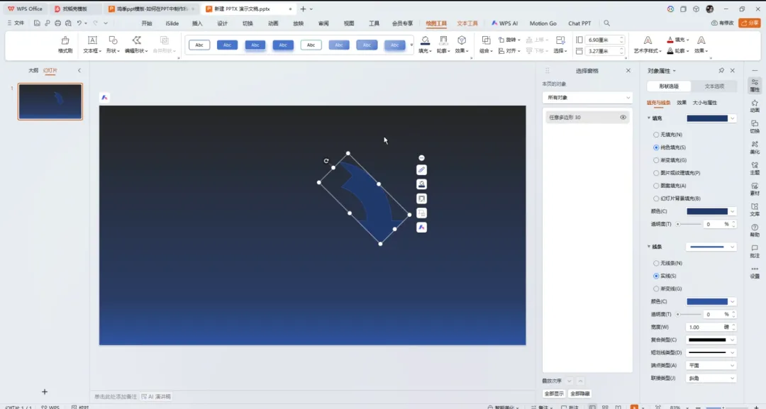 ②选中三角形1和圆环,执行【合并形状-剪除】,选中三角形2和圆环,执行【合并形状-拆分】,删除多余圆环和直线后,选中剩余形状,执行【合并形状-结合】,得到箭头的图形。
