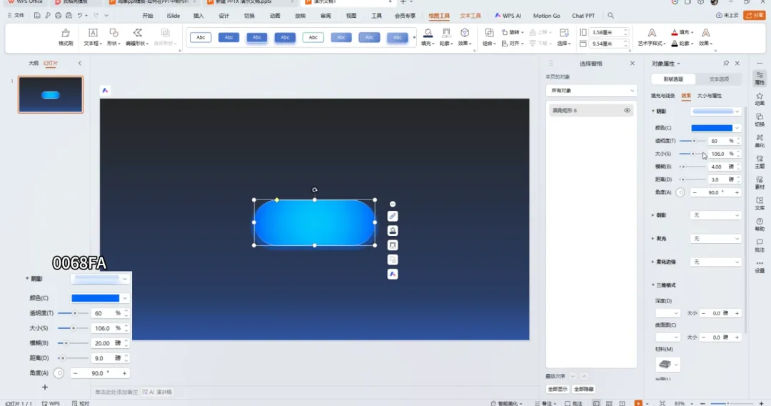 ④增加阴影效果,调整至自己喜欢的效果,也可参考图片数值。
