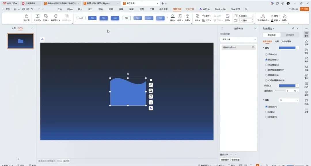 ①插入一个波形一个矩形,设置无边框颜色,将两个形状对齐摆放,选中两个形状执行【合并形状-结合】。