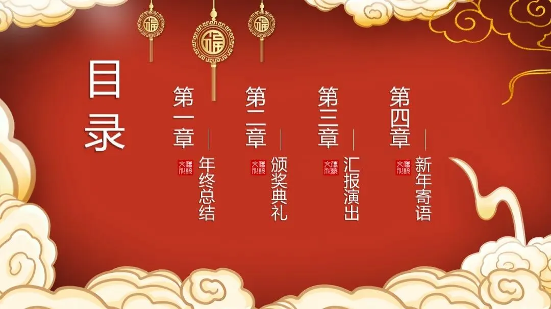 祥云、马年、财神、聚宝盆等喜庆元素,结构清晰、完整的跨年活动、年终盛典、开年庆典等活动适用模板。看中的亲点赞、关注、分享朋友圈,后台私信免费领取哦!