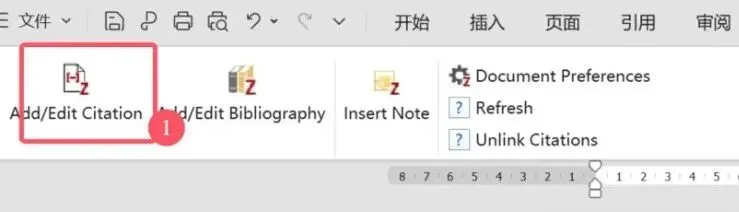 点击 Zotero 插件栏左上角的「Add/Edit Citation」按钮。