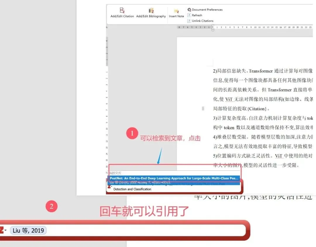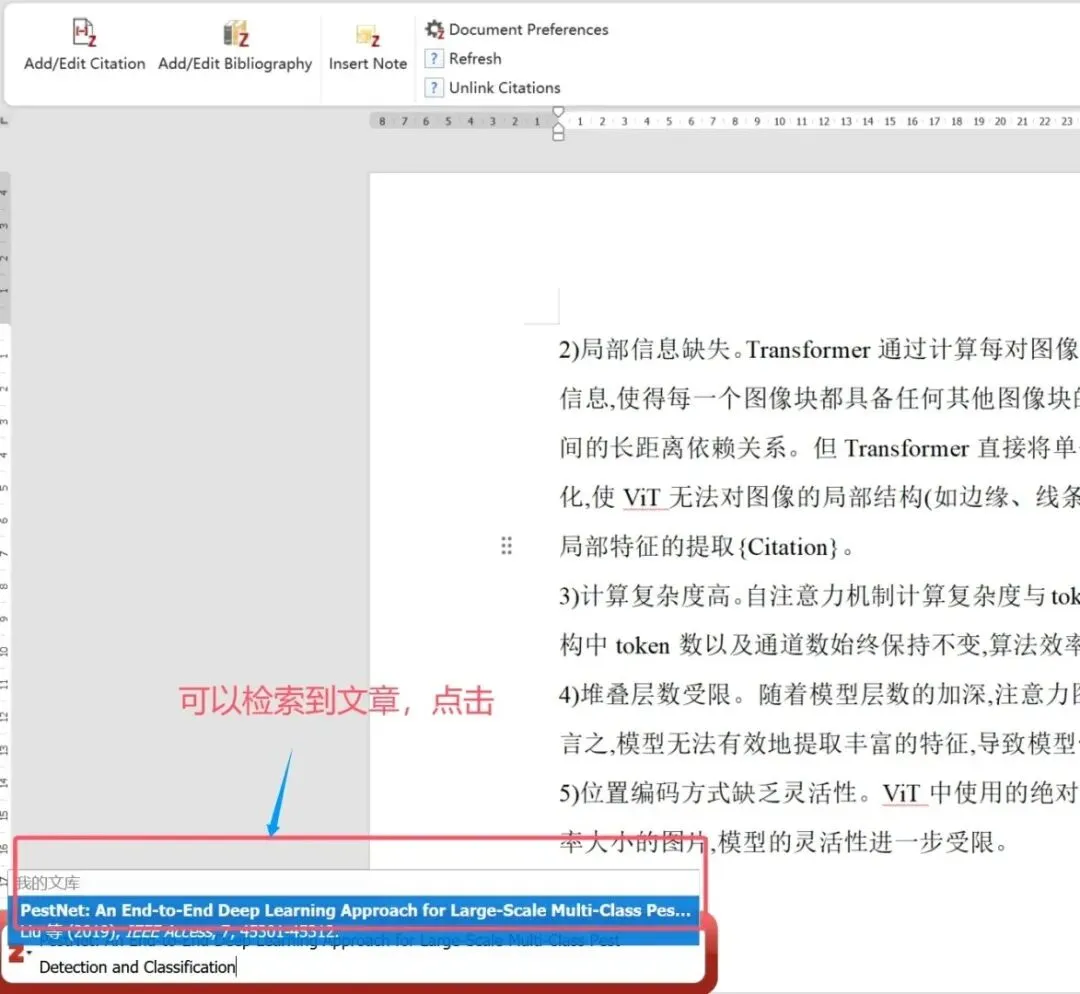检索到对应文献后点击选中,按下回车键,插入文献引用标号。