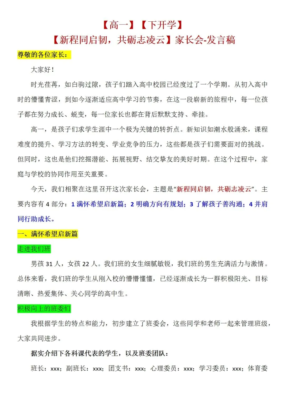 >2026年【高一】春季学期开学家长会ppt课件:高一新篇 ,并肩同行(含文稿)