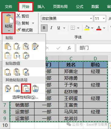 2. 在任意一个工作表中复制数据表 --> 将其粘贴为图片