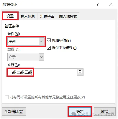 5. 在弹出的对话框中选择“设置”选项卡 --> 按以下方式设置 --> 点击“确定”:
