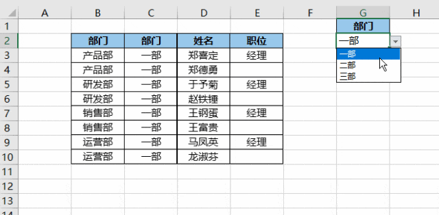 在工作簿中添加一个相当于索引页的工作表,通过其中的下拉菜单就可以查看每个部门的数据表。