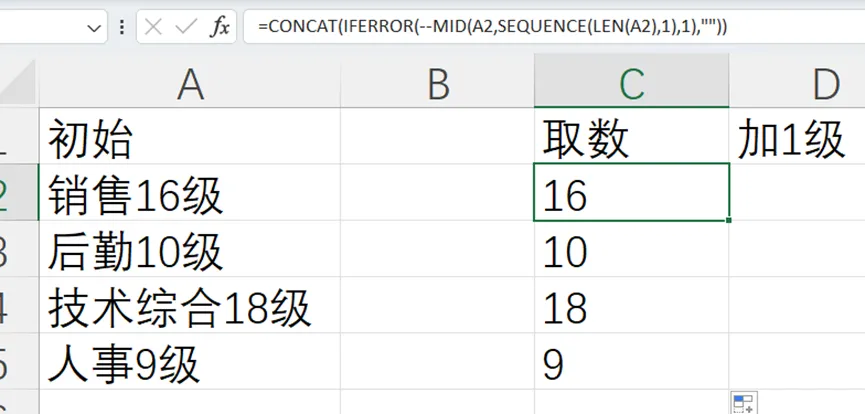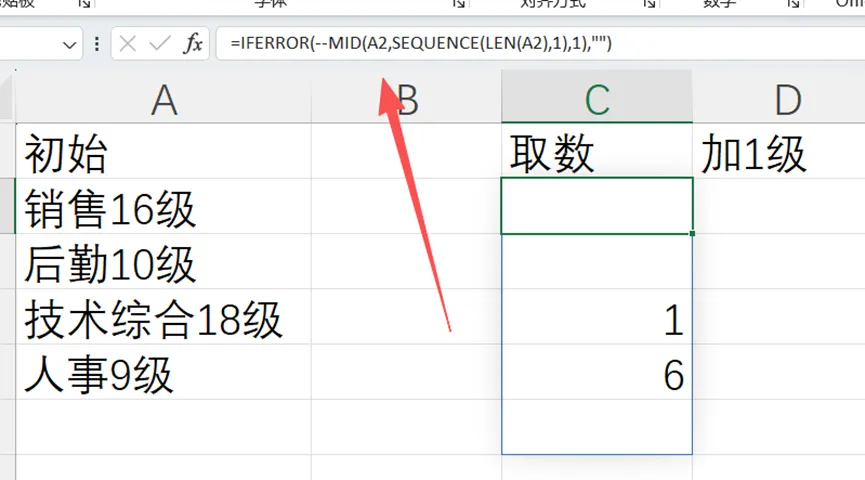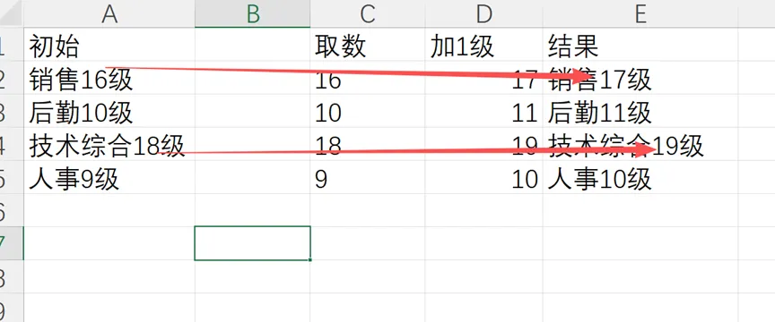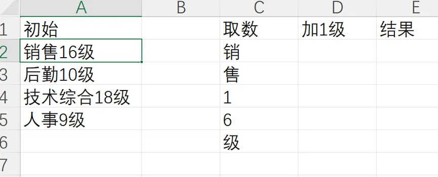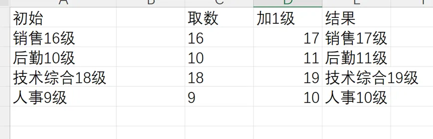 某个岗位或者某个人员需要升级的时候,因为这时候数字是夹在汉字中间的,也不知道数字是几位数,而且一列下来数字的位置也不同。这时候需要用到函数嵌套来解决,一劳永逸。