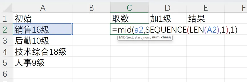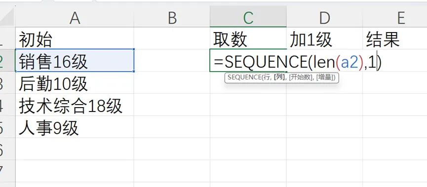 通过使用len函数来确定a2单元格的长度,再用sequence函数来生成一个数组