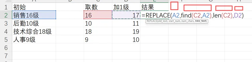 最后一个参数是新替换的文本,用的就是加1级后的结果