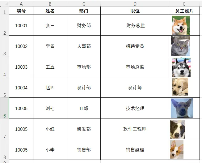 1、准备员工 Excel 数据。