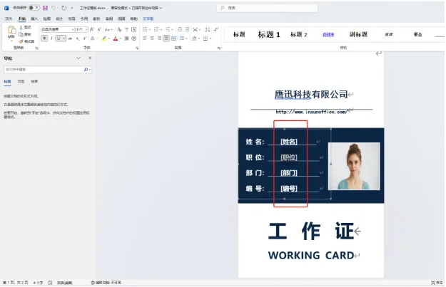 在 Word 模板中,需要替换的内容用英文状态下的中括号表示来设置占位符,中括号里面的文字就是excel对应列头的名字。例如[姓名]、[职位],也就是红色框框内的内容,这些都是需要根据 Excel 中的数据动态替换的。