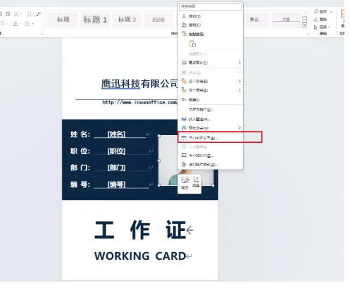 如果我们生成的文件中有照片需要动态替换,那也需要先插入一张模板照片,然后做如下设置: