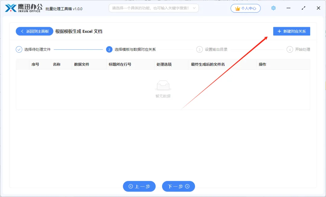 在这个页面,我们需要先选择左上角的【新建对应关系】