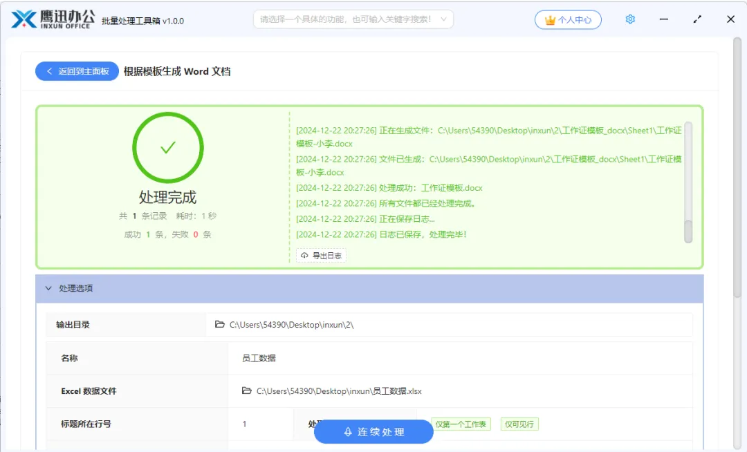 短短几秒钟,我们就可以生成几百上千份的员工工作证。通过这个批量处理工具,大大的解放了我们的双手。软件还有更多批量格式转换、批量修改文档内容等多种文档批量处理功能,赶紧安利给你身边的朋友们吧。