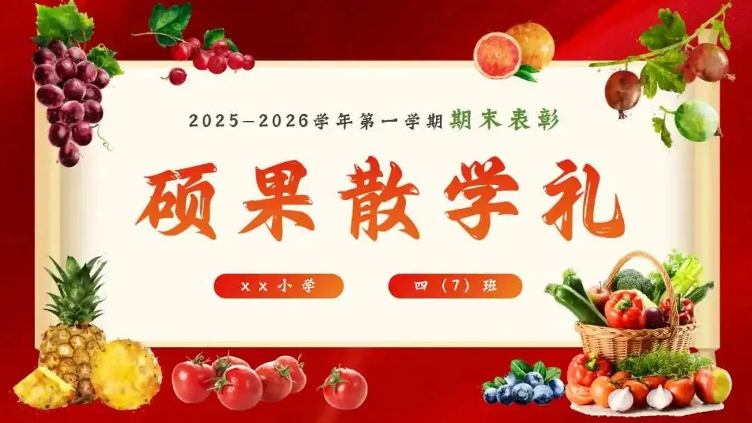 >小学寒假散学典礼安全教育ppt:小学期末蔬果表彰颁奖.
