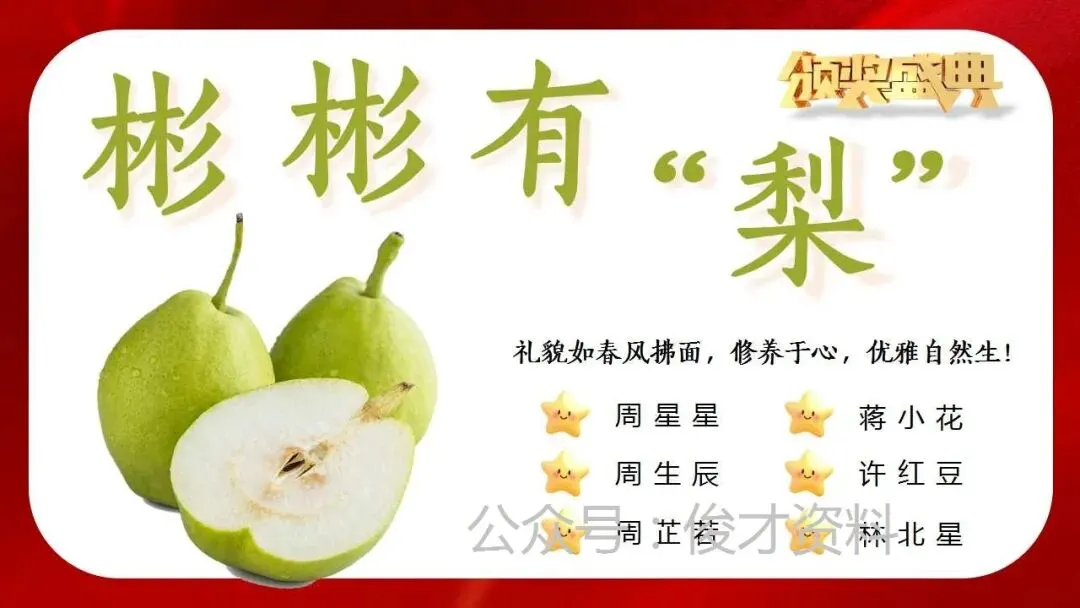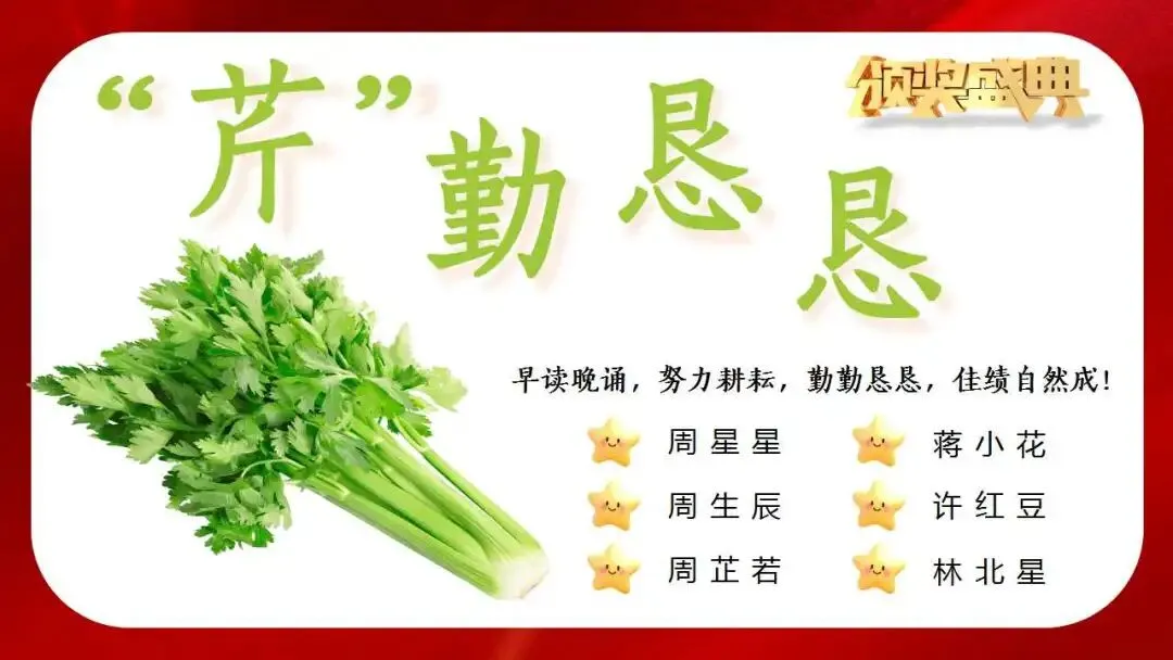 小学寒假散学典礼安全教育ppt:小学期末蔬果表彰颁奖。