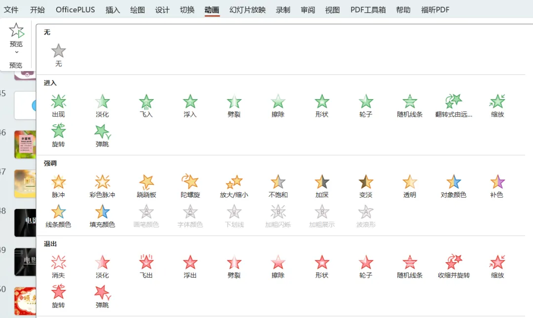 🎬 动画效果(今天的主角)让页面里的元素自己动起来。比如文本飞进来、图片转一圈、形状变色强调。操作位置:【动画】选项卡
