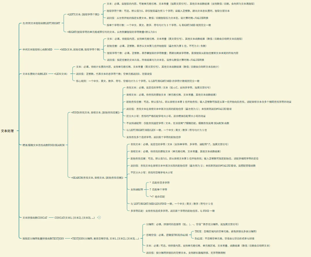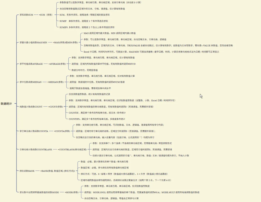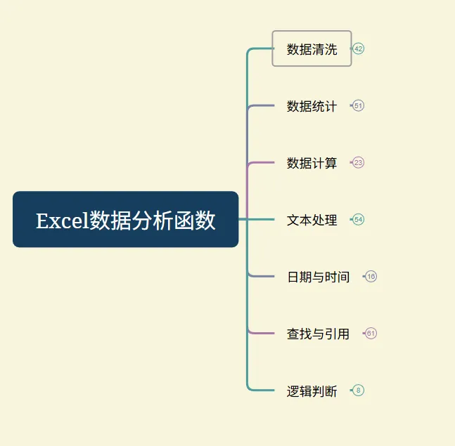 >Excel数据分析常用函数思维导图