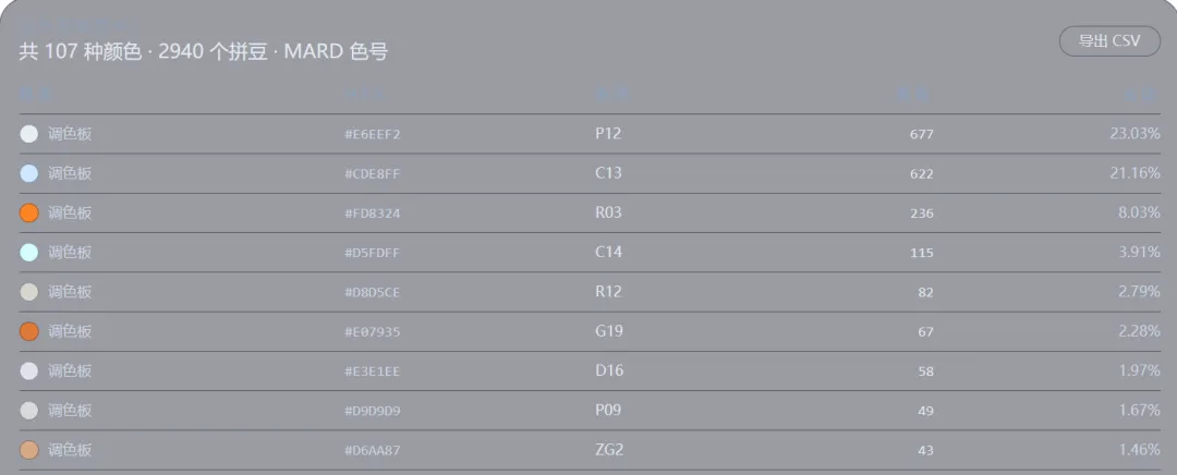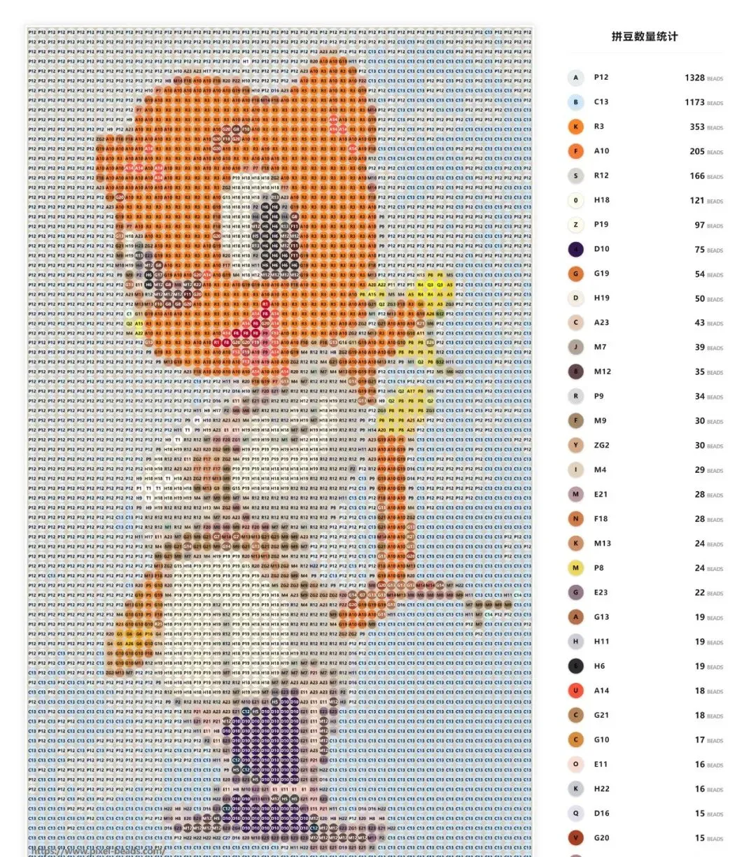 可以下载为PDF或图片,会给出拼豆数量统计。