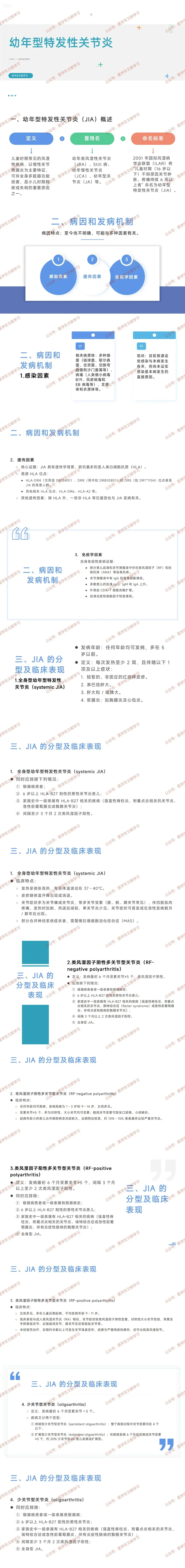 定义:儿童时期常见风湿性疾病,以慢性关节滑膜炎为主要特征,可累及全身多脏器,是小儿残疾或失明的重要原因之一