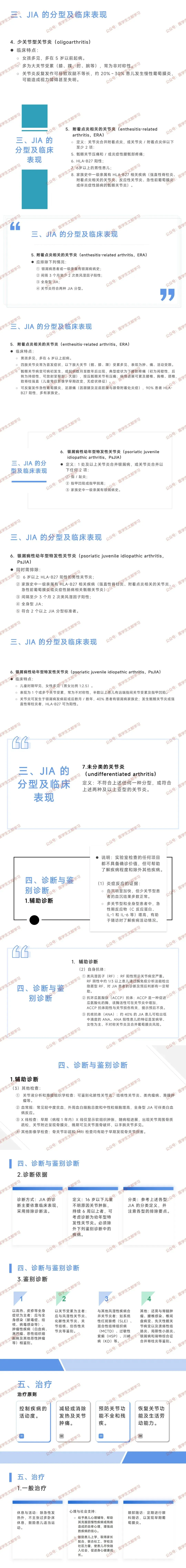 诊断依据:靠临床表现,排除诊断法;16 岁以下儿童不明原因关节肿胀持续 6 周以上考虑诊断,需除外鉴别疾病,参考各型分类定义及排除要点