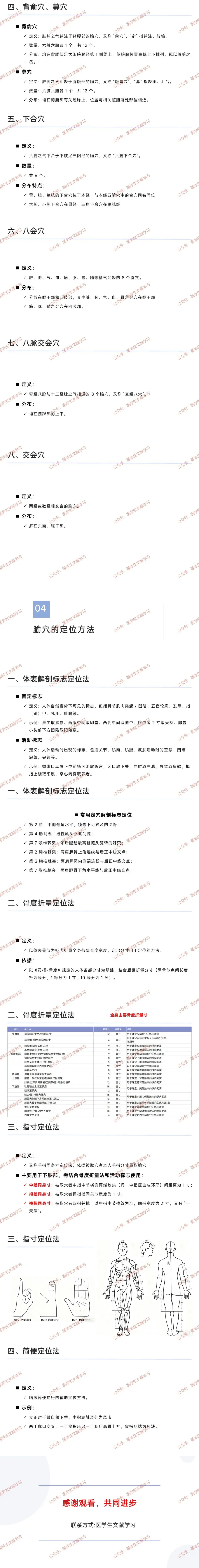 - 募穴:脏腑之气汇聚于胸腹部的腧穴,又称 “腹募穴”,六脏六腑各 1 个(共 12 个),均在胸腹部相关经脉上,位置近对应脏腑。