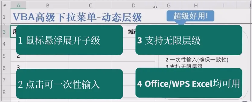 Excel下拉菜单03 超强VBA效果:动态层级菜单