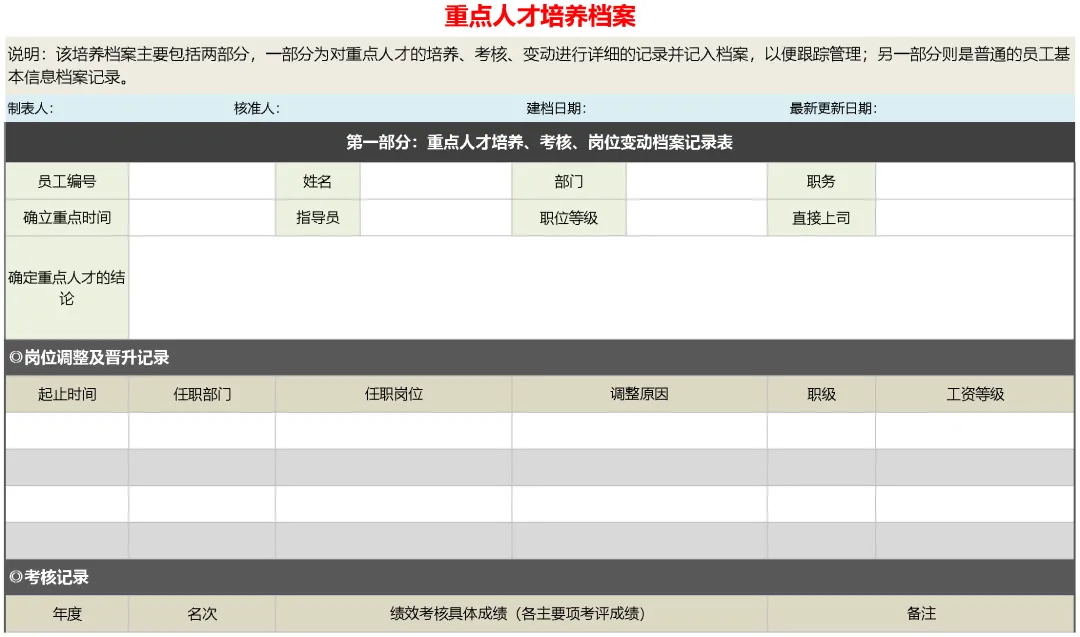 本资料为《某公司重点人才培养档案(Excel文档)》,欢迎加入会员领取!