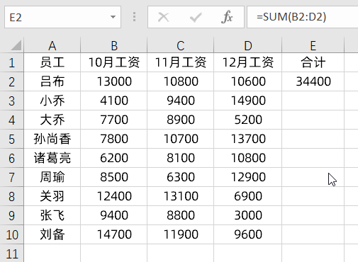 当需批量填充公式时,一般会使用拖拉法,将光标放于单元格右下角,之后按鼠标左键,向下拖,即可填充完所有公式。
